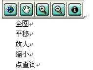 面积测量:计算地图上某多边形范围的面积,点击该按钮后,在地图左键连续点击设置多边形范围,双击结束选择,系统以跳出对话框方式显示该段范围距离。